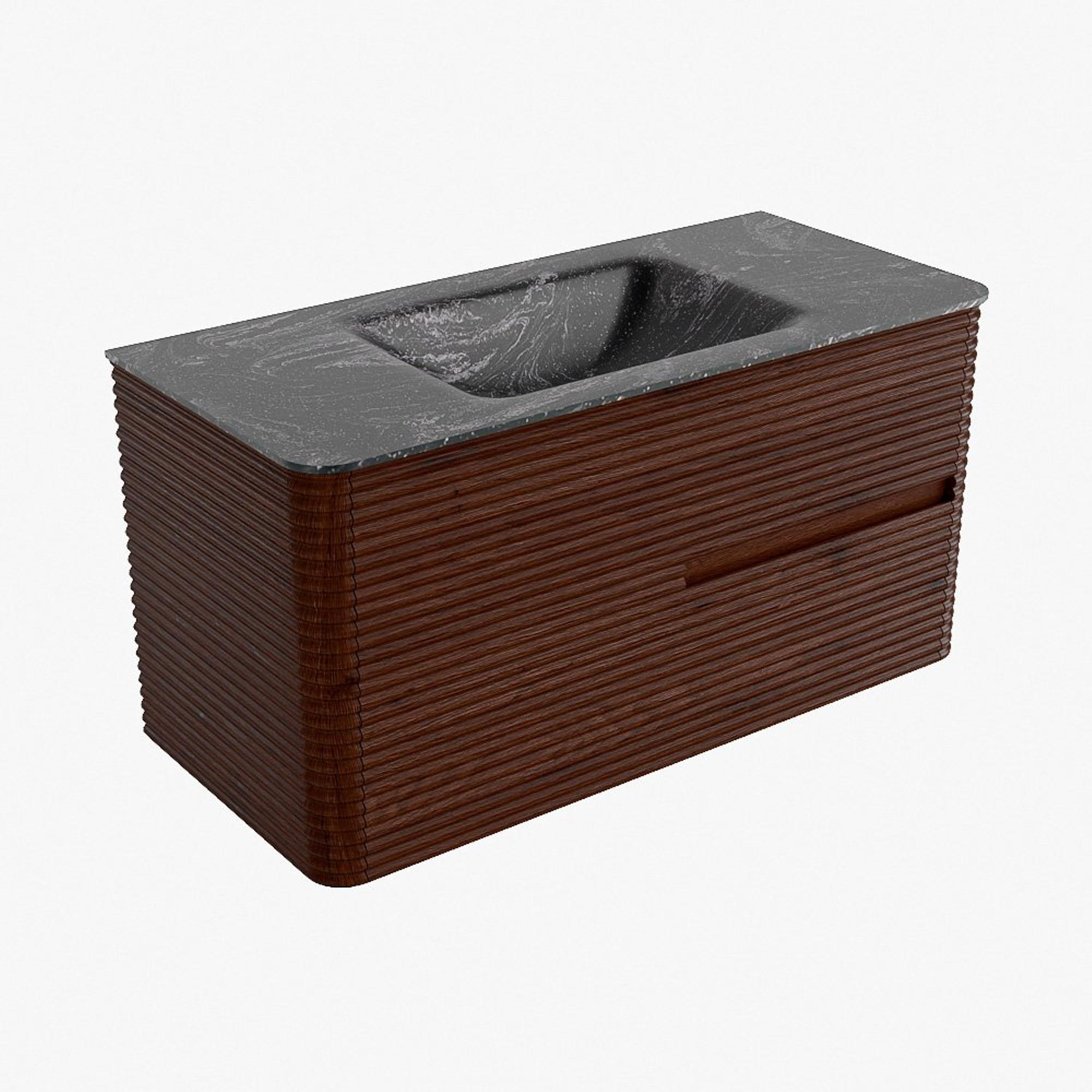Mondiaz CIRO-DLUX Ensemble de meubles de salle de bains - 100x45x50cm - lavabo en solid surface Lava - 1 vasque au milieu - sans trous de robinet - 2 tiroirs - Ruby