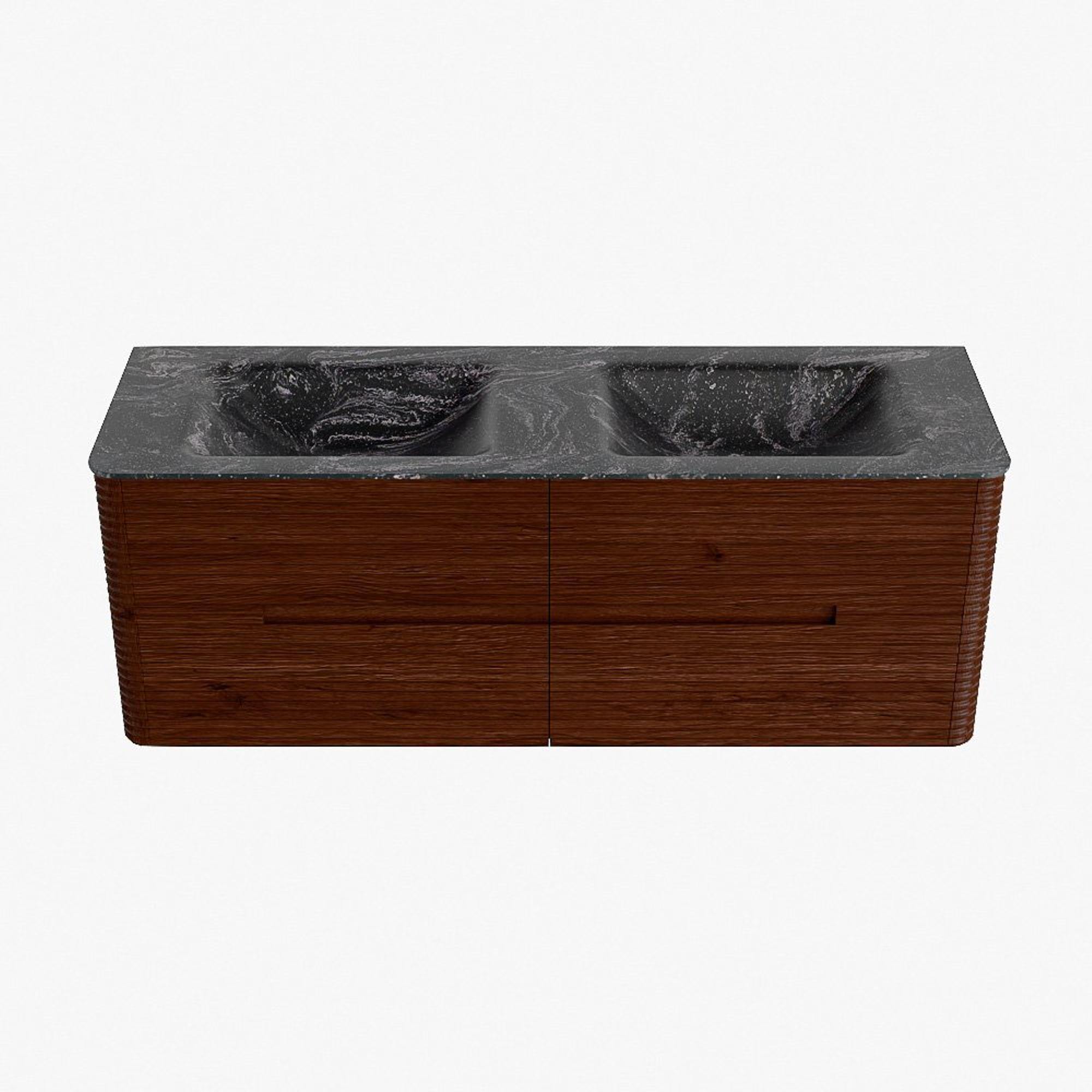 Mondiaz CIRO-DLUX Ensemble de meuble de salle de bains - 140x45x50cm - Vasque en solid surface Lava - 2 bassins double - 2 trous de robinetterie - 4 tiroirs - Ruby