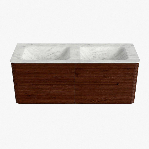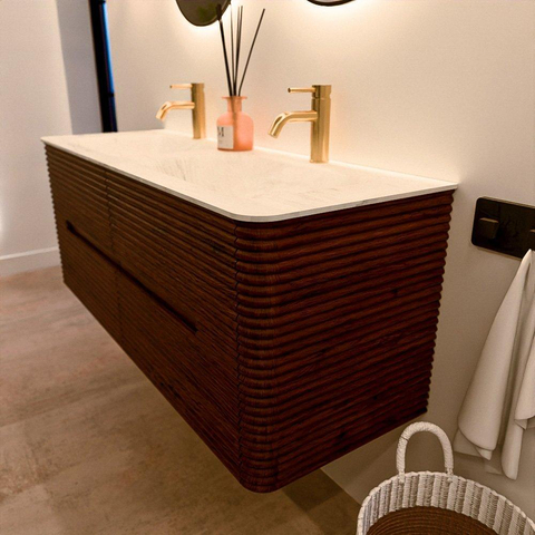 Mondiaz CIRO-DLUX Meuble de salle de bains - 130x45x50cm - Plan vasque Solid surface Opalo - 2 vasques Double - 2 trous de robinet - 4 tiroirs - Ruby