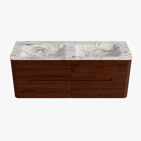 Mondiaz CIRO-DLUX Ensemble meuble de salle de bains - 130x45x50cm - Plan vasque solid surface Glace - 2 vasques Double - 2 trous de robinetterie - 4 tiroirs - Ruby