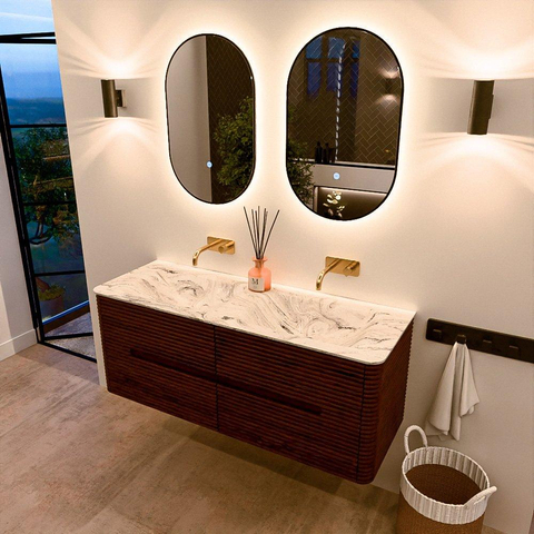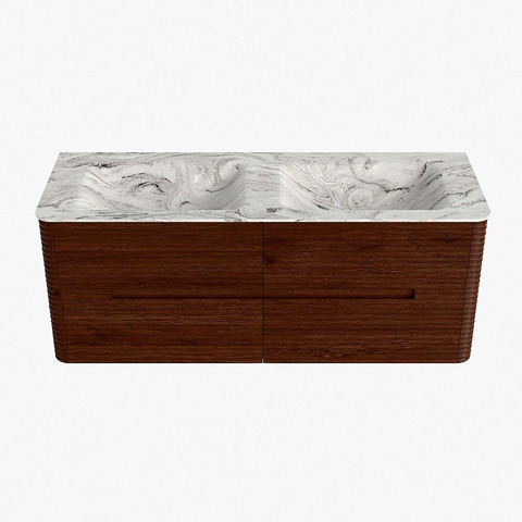 Mondiaz CIRO-DLUX Ensemble de meubles de salle de bains - 130x45x50cm - Plan vasque solid surface Glace - 2 vasques double - sans trous de robinetterie - 4 tiroirs - Ruby