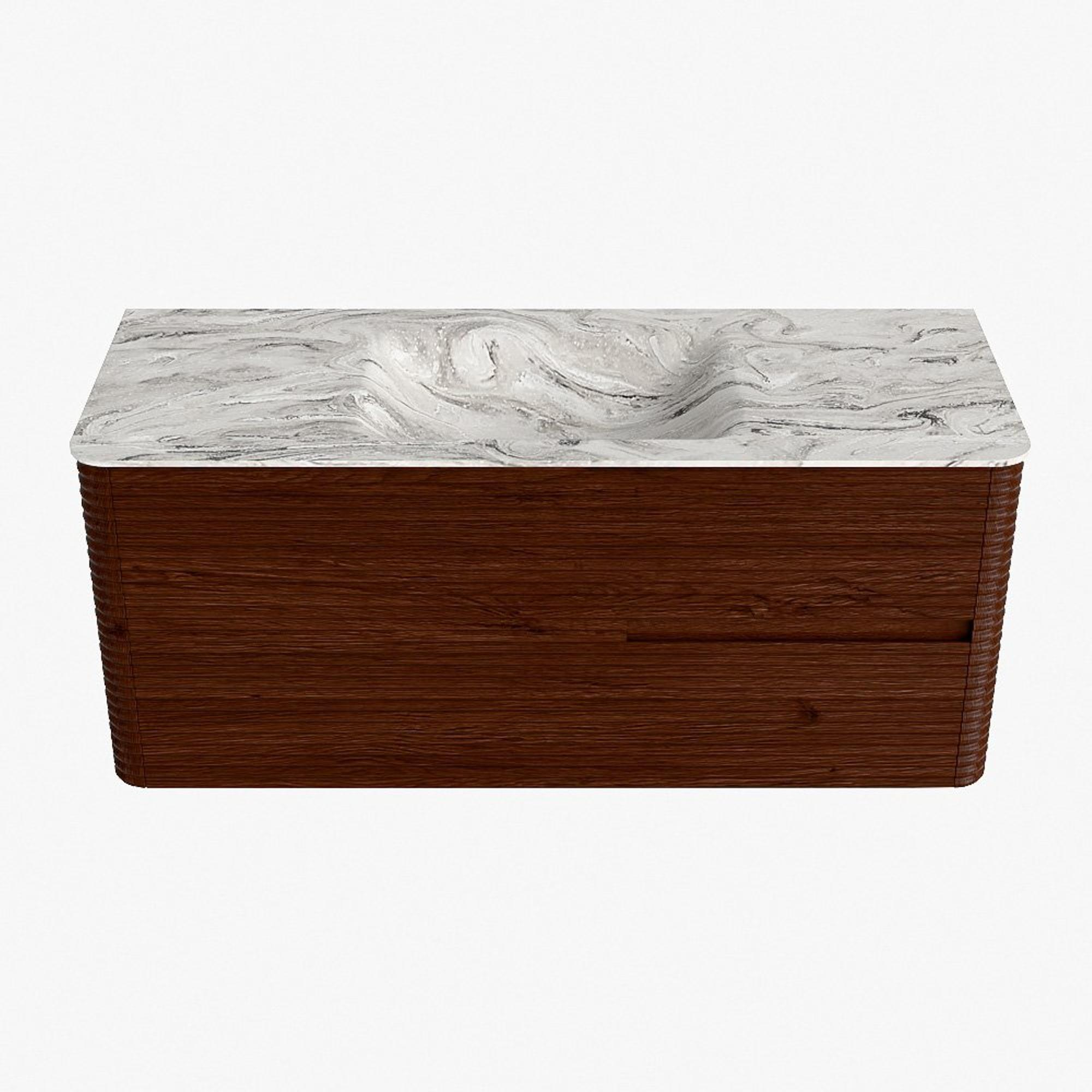 Mondiaz CIRO-DLUX Meuble de salle de bains - 120x45x50cm - Vasque solid surface Glace - 1 lavabo au milieu - 1 trou de robinet - 2 tiroirs - Ruby