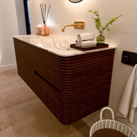 Le meuble de salle de bain CIRO-DLUX a été développé pour ceux qui choisissent un design moderne, des matériaux naturels et une fonctionnalité de haute qualité. Avec des dimensions allant de 70 cm à 190 cm, la gamme CIRO-DLUX s’intègre facilement aussi bien dans les salles de bain compactes que dans les grands espaces de design. Chaque meuble est une combinaison équilibrée d’esthétique, de savoir-faire et de qualité durable.