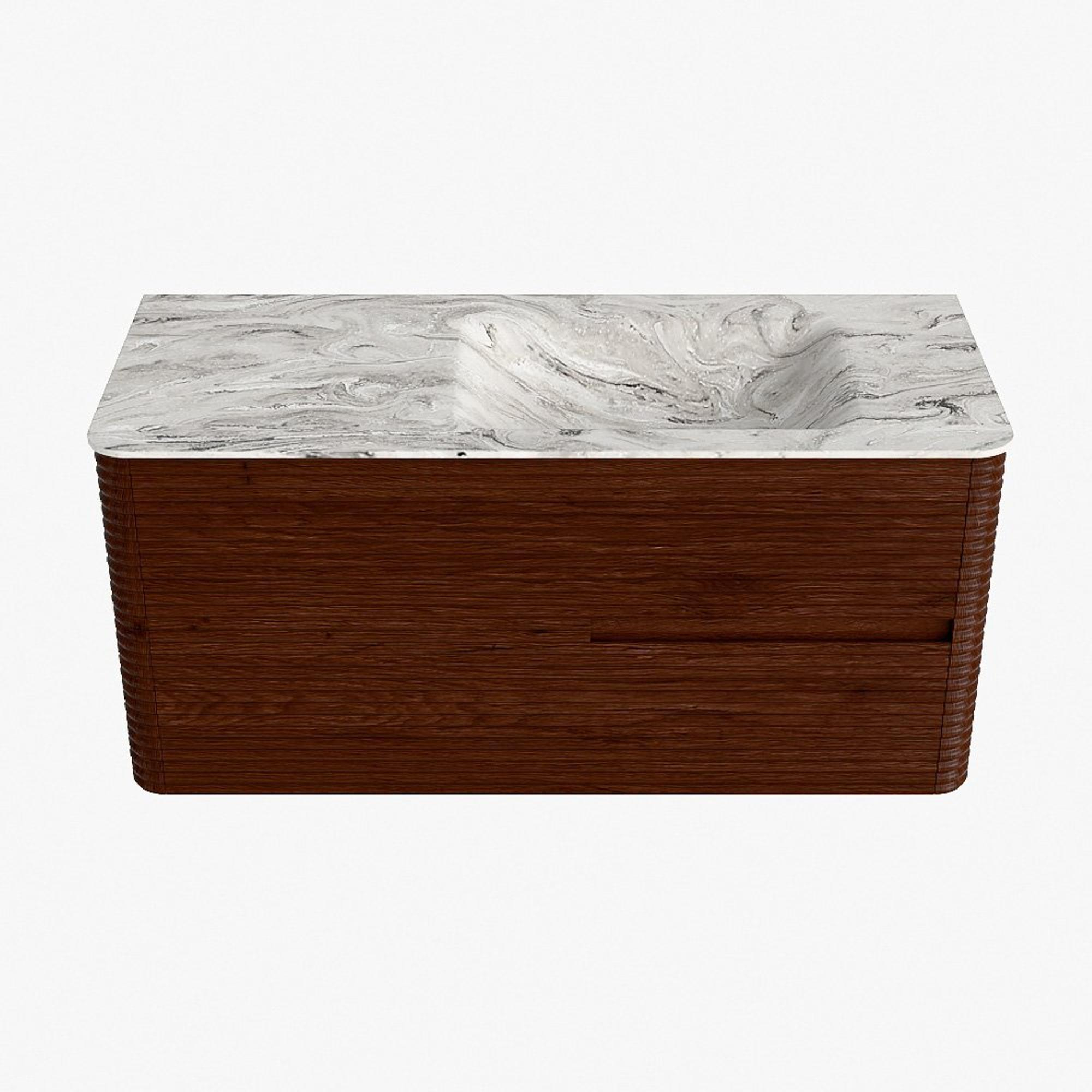 Mondiaz CIRO-DLUX Meuble de salle de bains - 110x45x50cm - Plan vasque solid surface Glace - 1 vasque à droite - 1 trou de robinetterie - 2 tiroirs - Ruby