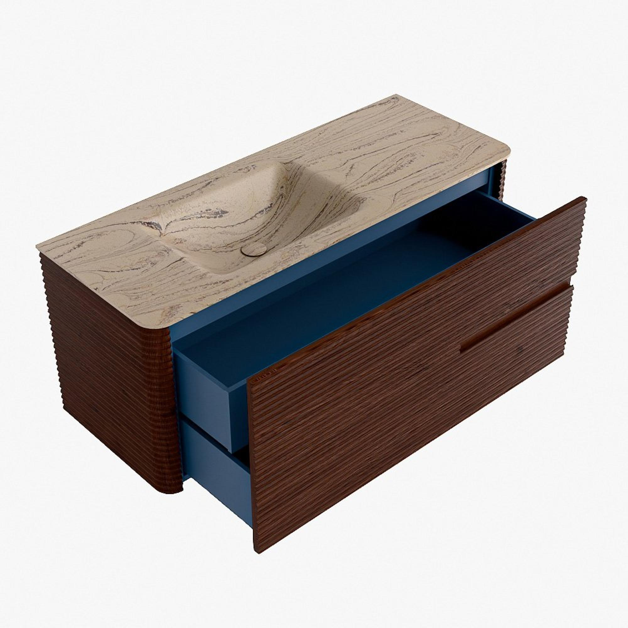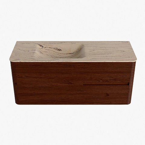 Mondiaz CIRO-DLUX Ensemble de meubles de salle de bains - 120x45x50cm - Plan vasque solid surface Arena - 1 vasque à gauche - 1 trou de robinet - 2 tiroirs - Ruby