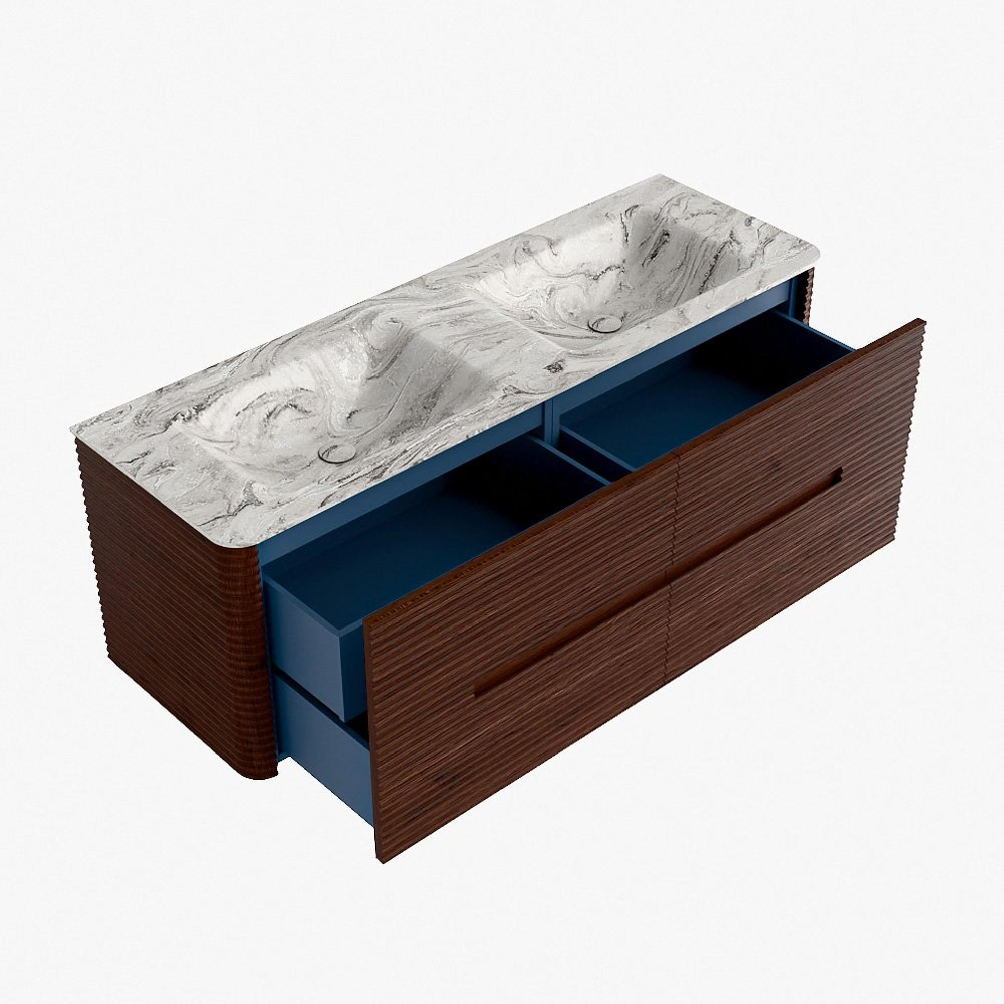 Mondiaz CIRO-DLUX Meuble de salle de bains - 140x45x50cm - Plan vasque solid surface Glace - 2 vasques Double - 2 trous de robinetterie - 4 tiroirs - Ruby