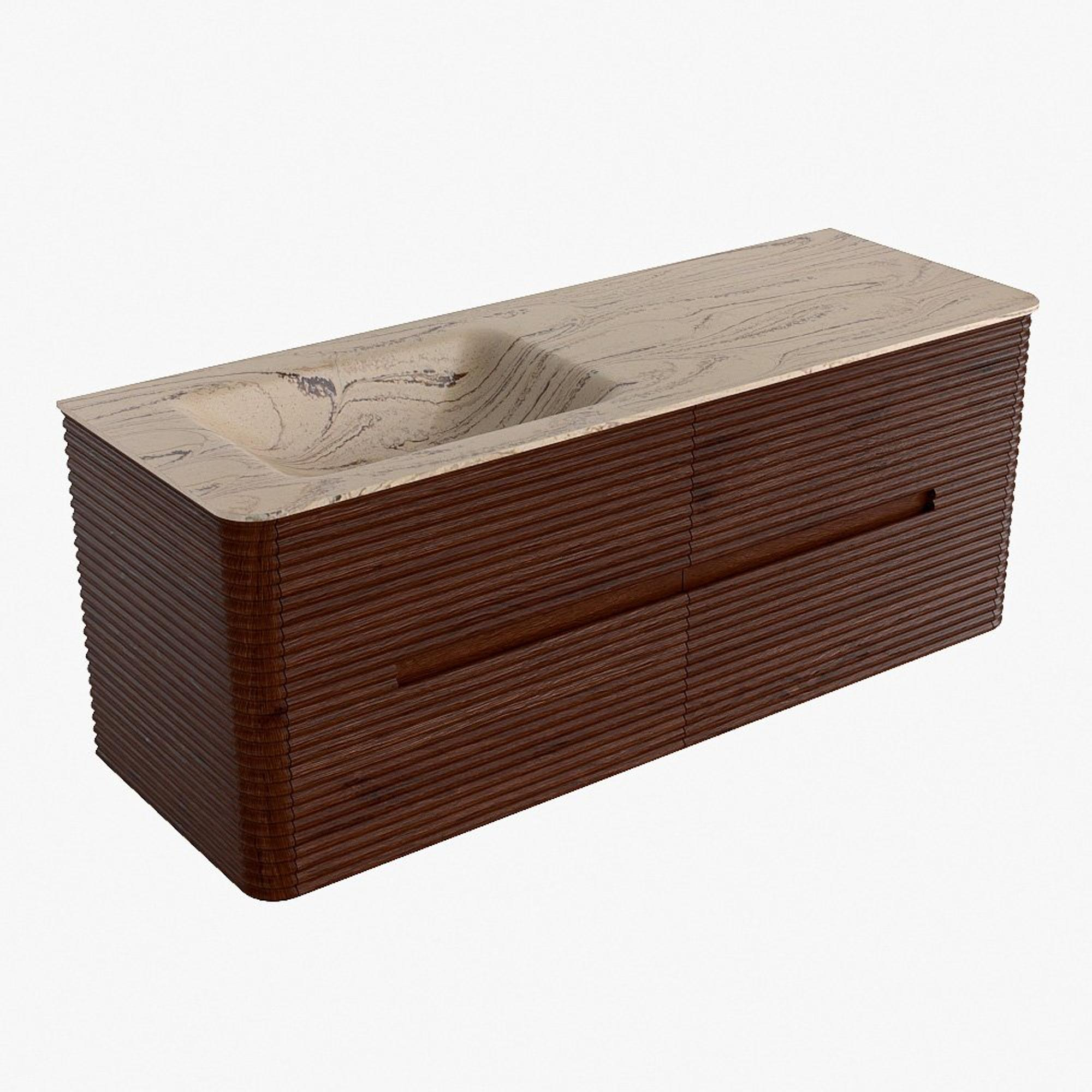 Mondiaz CIRO-DLUX Meuble de salle de bains - 130x45x50cm - Plan vasque Solid surface Arena - 1 lavabo à gauche - sans trous de robinetterie - 4 tiroirs - Ruby