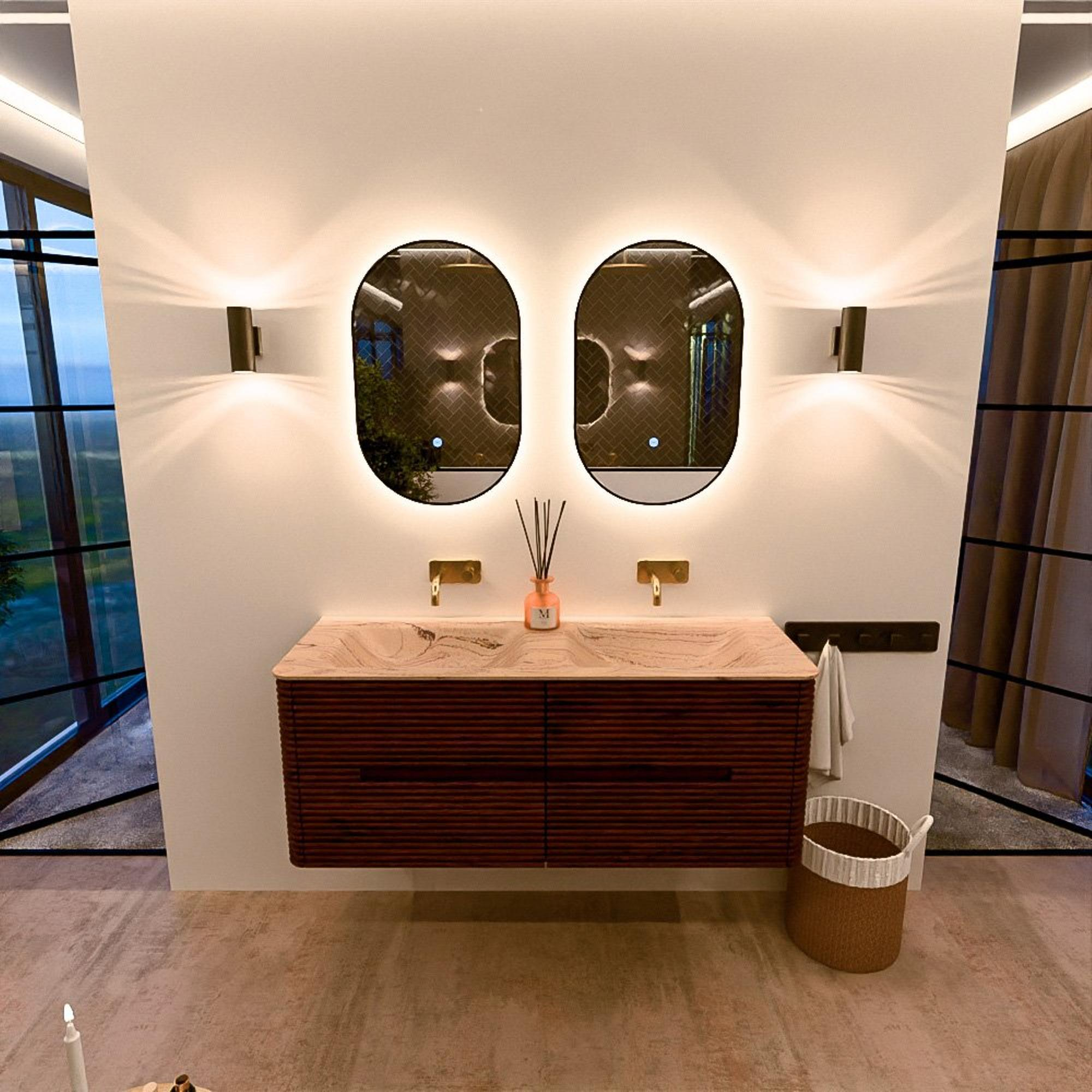 Mondiaz CIRO-DLUX Ensemble de meubles de salle de bains - 130x45x50cm - Plan vasque solid surface Arena - 2 vasques Double - sans trous de robinetterie - 4 tiroirs - Ruby