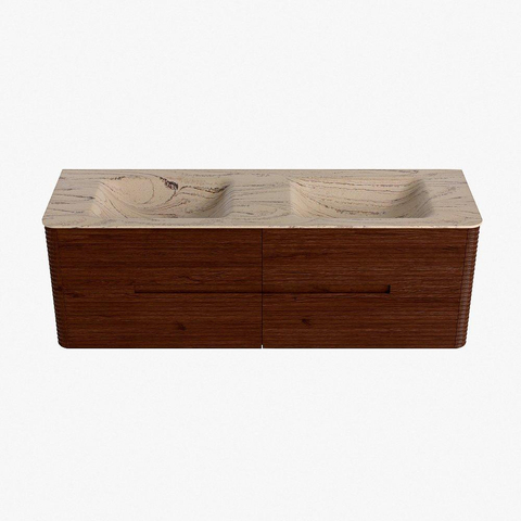Mondiaz CIRO-DLUX Ensemble de meubles de salle de bains - 150x45x50cm - Plan-vasque solid surface Arena - 2 vasques double - 2 perçages pour robinet - 4 tiroirs - Ruby