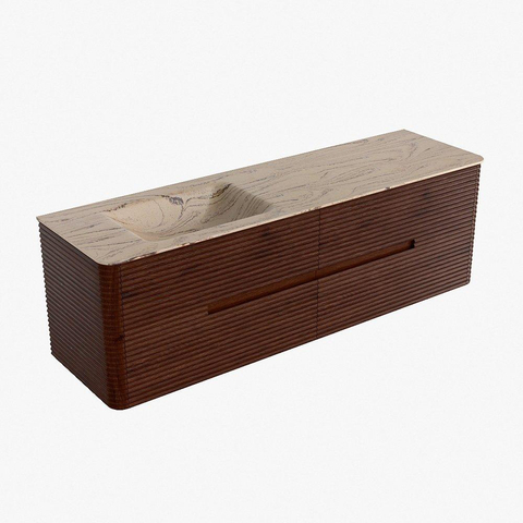 Mondiaz CIRO-DLUX Ensemble de meubles de salle de bains - 160x45x50cm - Plan-vasque solid surface Arena - 1 lavabo à gauche - sans trous de robinet - 4 tiroirs - Ruby