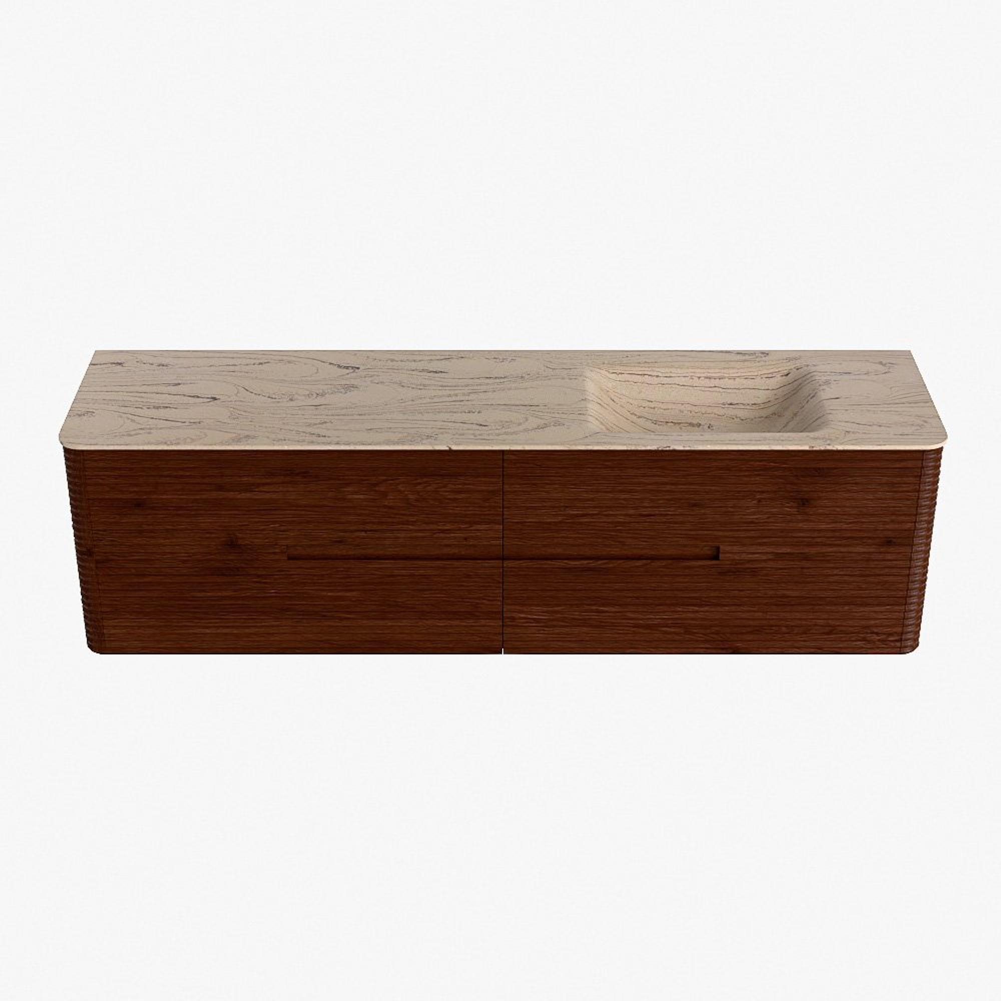 Mondiaz CIRO-DLUX Ensemble de meubles de salle de bains - 180x45x50cm - Plan vasque solid surface Arena - 1 bassin à droite - sans trous de robinet - 4 tiroirs - Ruby