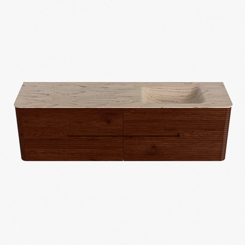 Mondiaz CIRO-DLUX Ensemble de meubles de salle de bains - 170x45x50cm - plan-vasque en solid surface Arena - 1 vasque à droite - sans trous de robinetterie - 4 tiroirs - Ruby