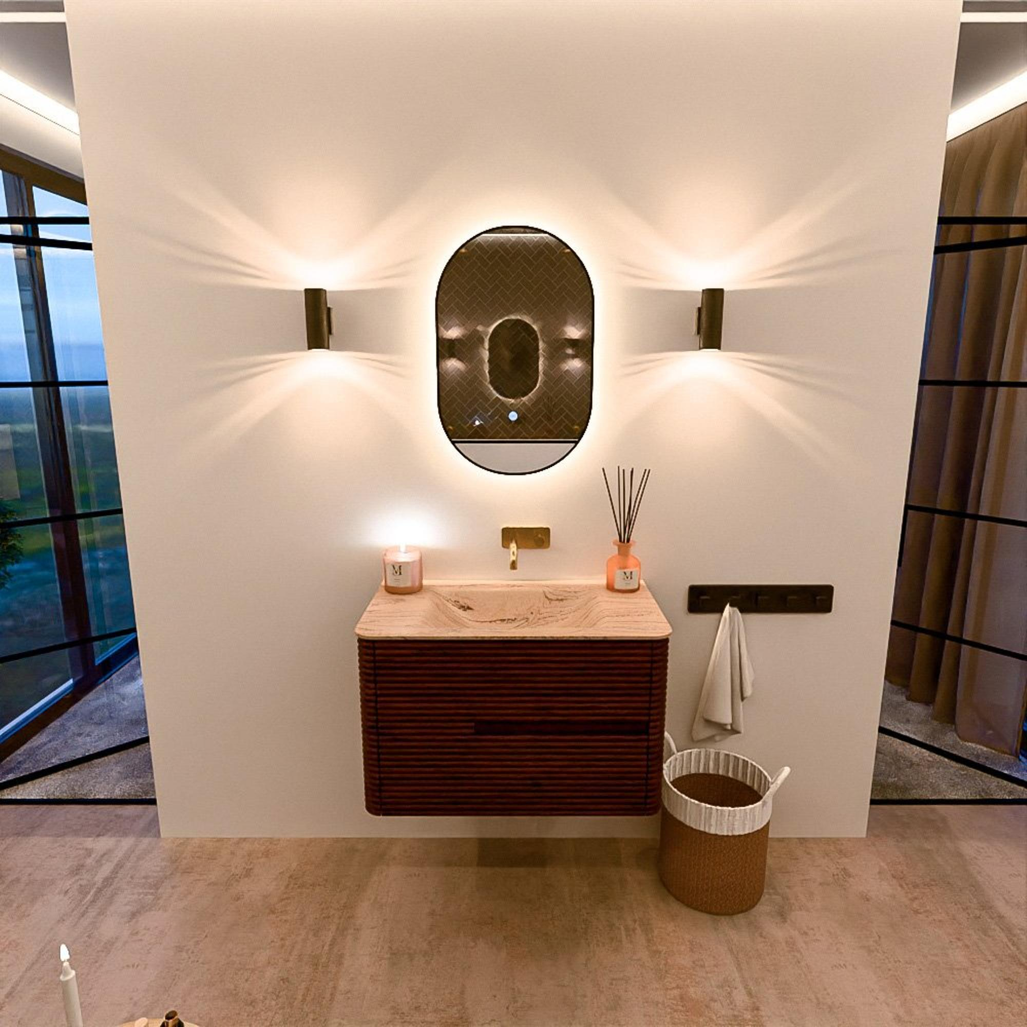 Mondiaz CIRO-DLUX Ensemble de meubles de salle de bains - 80x45x50cm - lavabo solid surface Arena - 1 vasque au milieu - sans trous de robinetterie - 2 tiroirs - Ruby