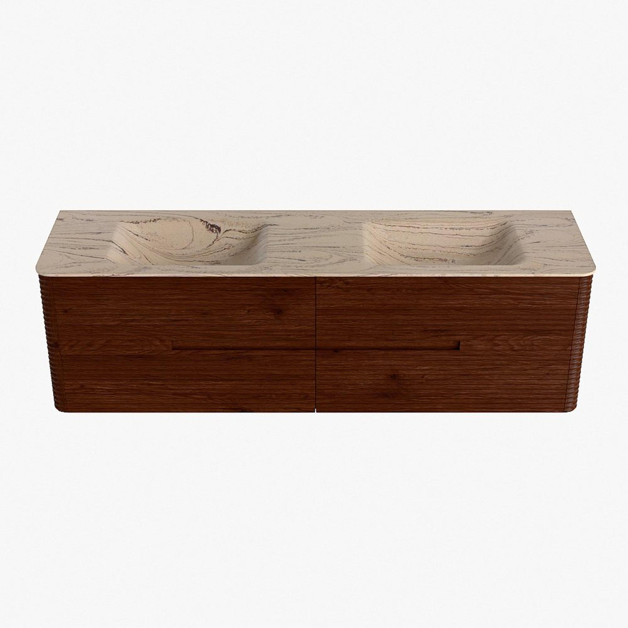 Mondiaz CIRO-DLUX Meuble de salle de bains - 170x45x50cm - Plan-vasque solid surface Arena - 2 vasques doubles - sans trous de robinetterie - 4 tiroirs - Ruby