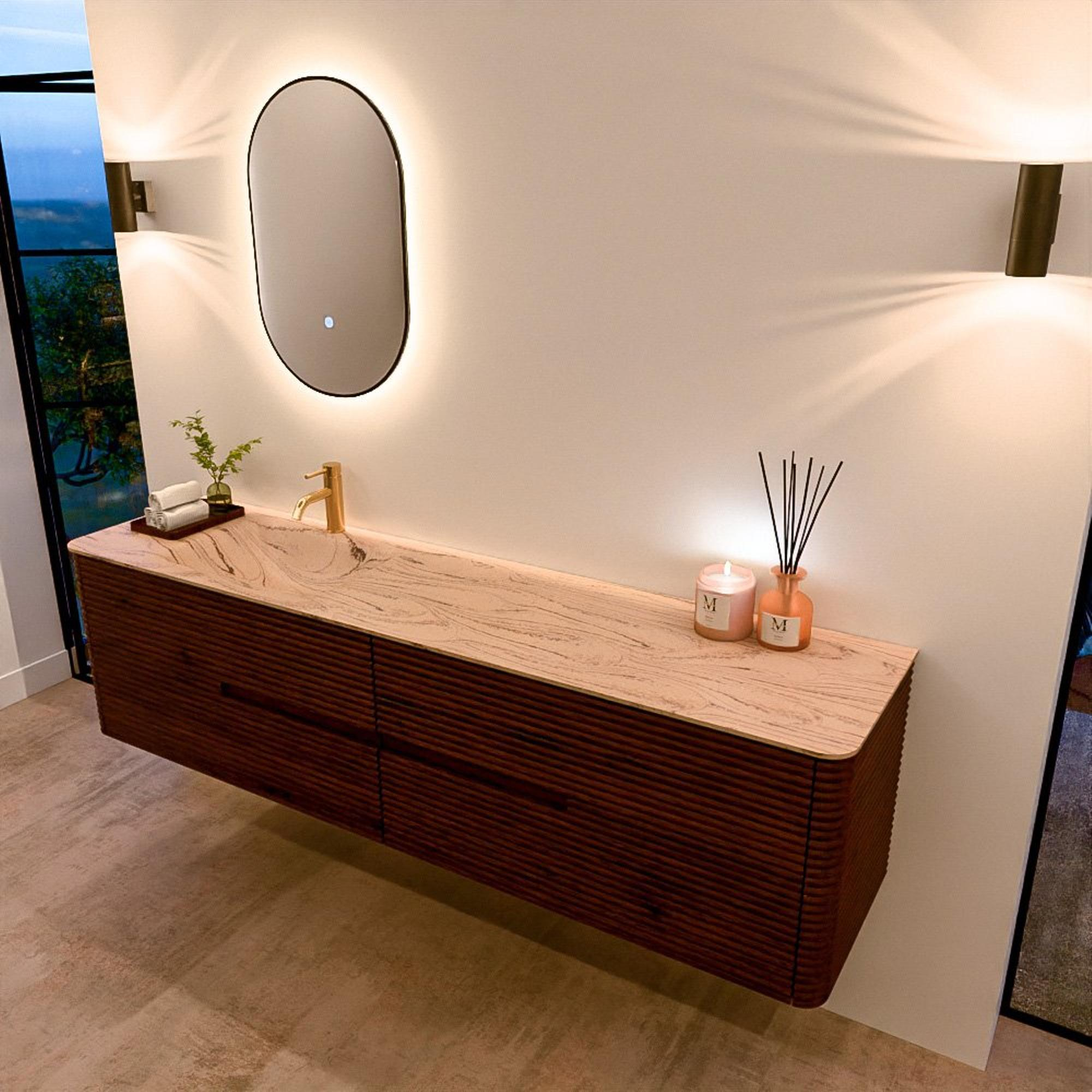 Le meuble de salle de bain CIRO-DLUX a été développé pour ceux qui choisissent un design moderne, des matériaux naturels et une fonctionnalité de haute qualité. Avec des dimensions allant de 70 cm à 190 cm, la gamme CIRO-DLUX s’intègre facilement aussi bien dans les salles de bain compactes que dans les grands espaces de design. Chaque meuble est une combinaison équilibrée d’esthétique, de savoir-faire et de qualité durable.