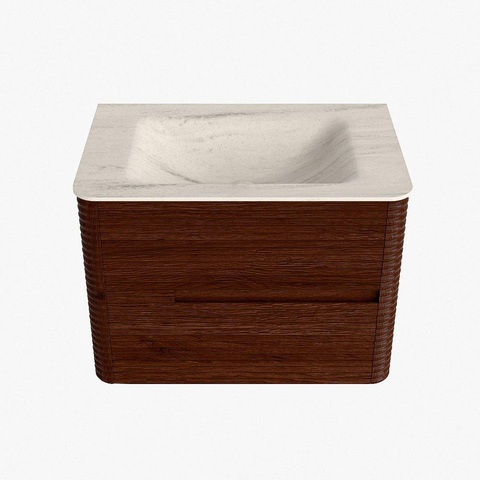 Mondiaz CIRO-DLUX Meuble de salle de bains - 70x45x50cm - Plan vasque solid surface Meli - 1 lavabo central - sans trous de robinetterie - 2 tiroirs - Ruby