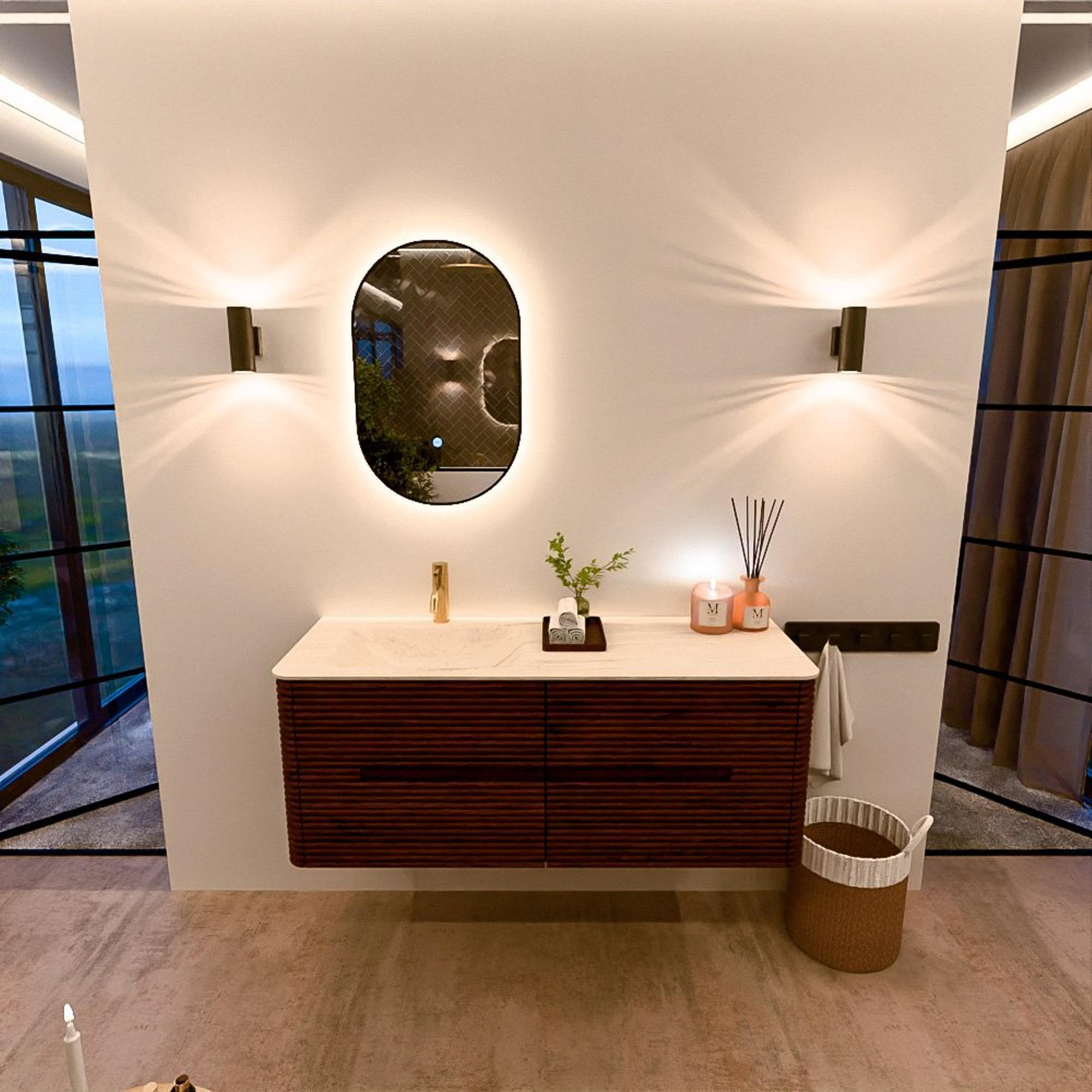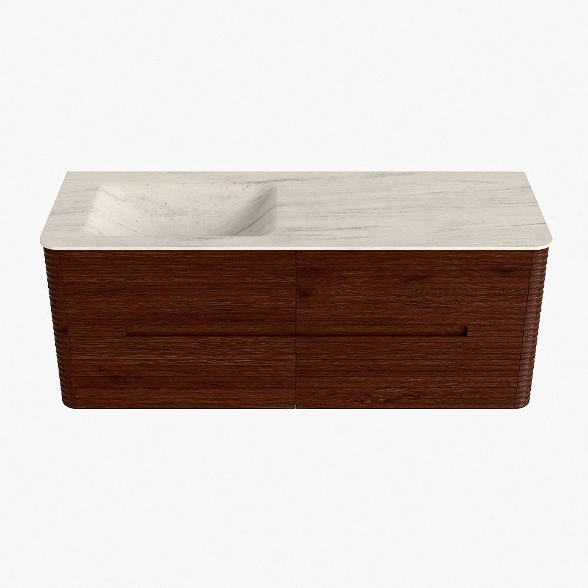 Mondiaz CIRO-DLUX Meuble de salle de bains - 130x45x50cm - Plan vasque Solid surface Meli - 1 vasque à gauche - 1 trou de robinetterie - 4 tiroirs - Ruby