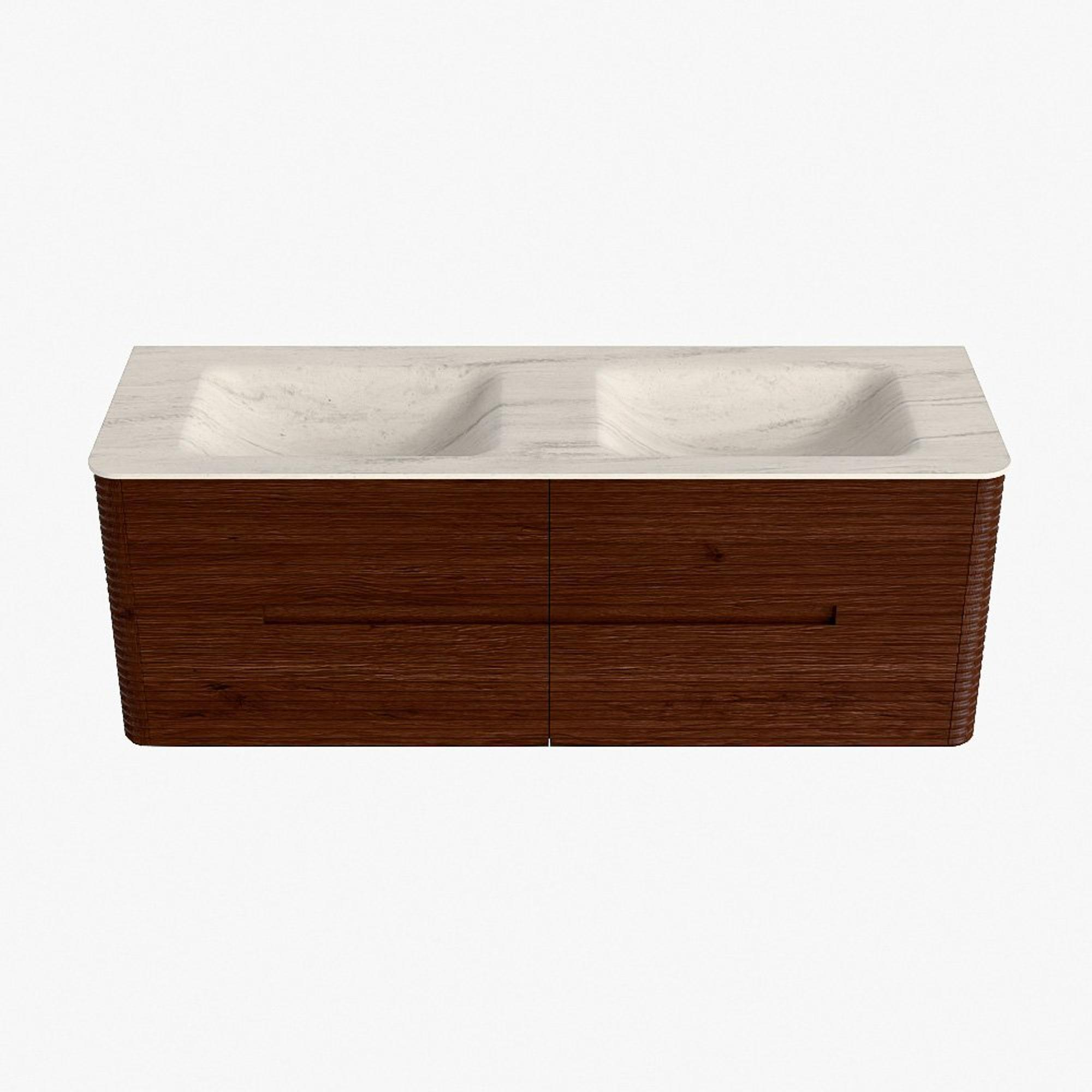 Mondiaz CIRO-DLUX Ensemble de meubles de salle de bains - 140x45x50cm - Plan vasque solid surface Meli - 2 vasques Double - 2 trous de robinet - 4 tiroirs - Ruby