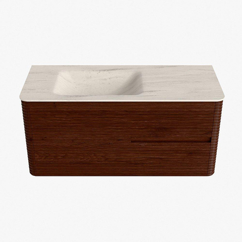Mondiaz CIRO-DLUX Meuble de salle de bains - 110x45x50cm - Plan vasque en solid surface Meli - 1 vasque à gauche - 1 trou de robinet - 2 tiroirs - Ruby