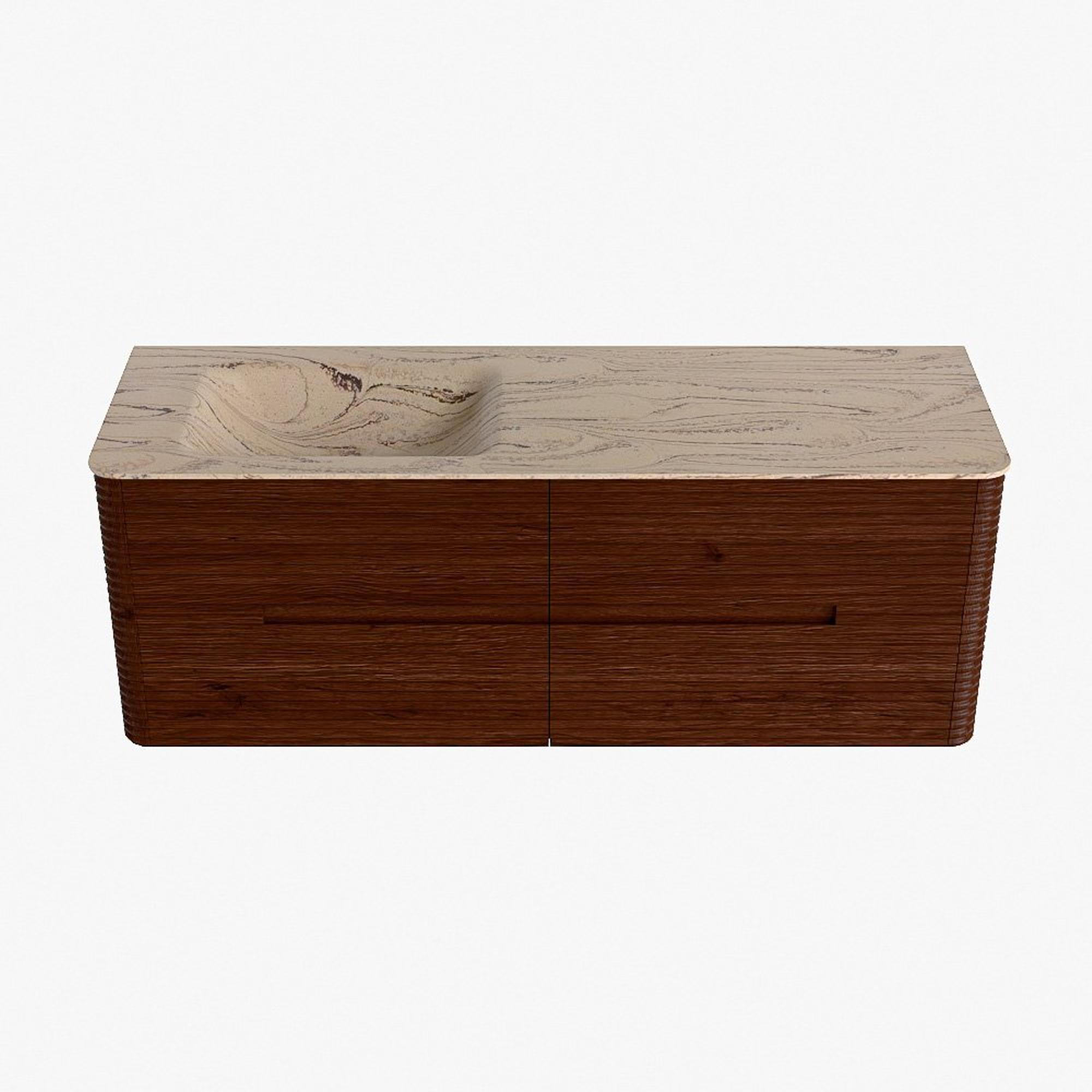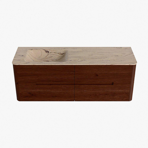 Mondiaz CIRO-DLUX Ensemble de meubles de salle de bains - 140x45x50cm - Plan vasque solid surface Arena - 1 lavabo à gauche - 1 trou de robinet - 4 tiroirs - Ruby