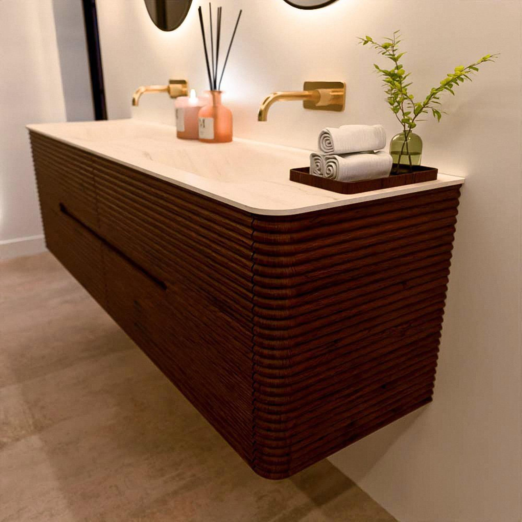 Le meuble de salle de bain CIRO-DLUX a été développé pour ceux qui choisissent un design moderne, des matériaux naturels et une fonctionnalité de haute qualité. Avec des dimensions allant de 70 cm à 190 cm, la gamme CIRO-DLUX s’intègre facilement aussi bien dans les salles de bain compactes que dans les grands espaces de design. Chaque meuble est une combinaison équilibrée d’esthétique, de savoir-faire et de qualité durable.
