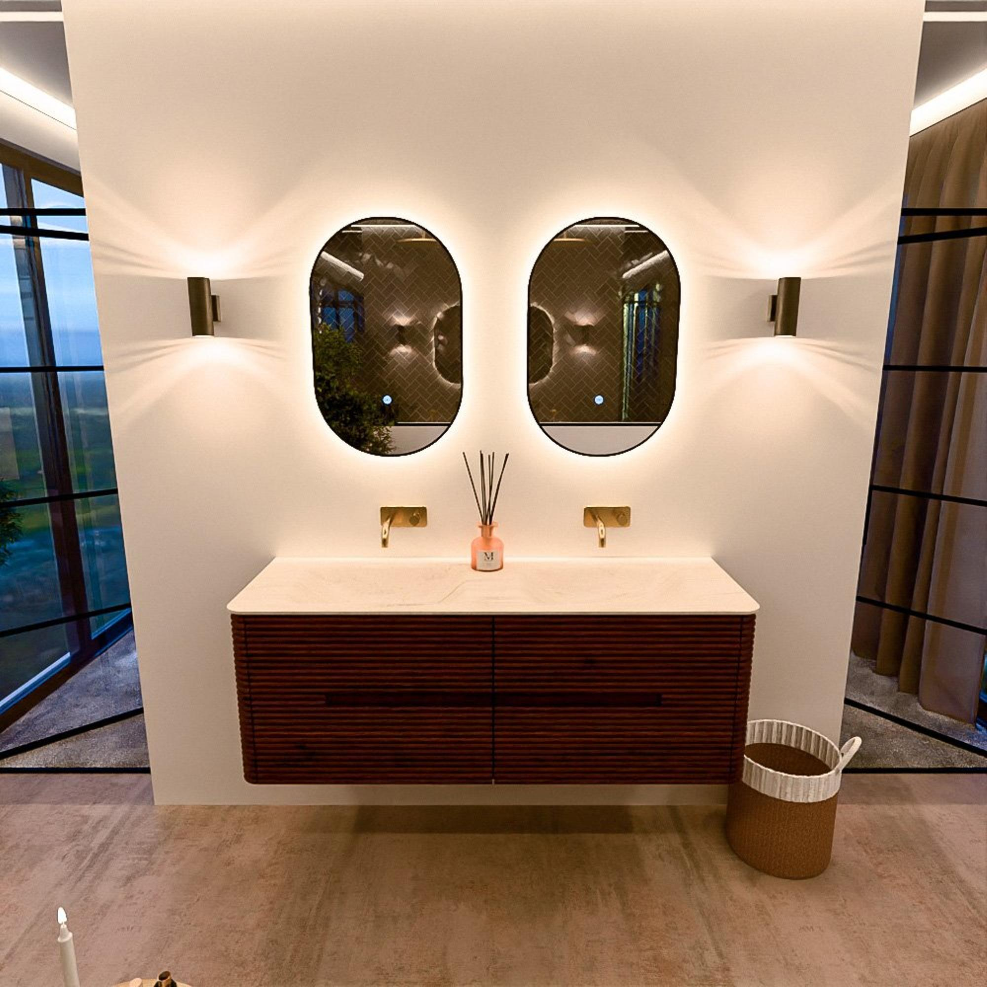 Mondiaz CIRO-DLUX Ensemble de meubles de salle de bains - 140x45x50cm - lavabo solid surface Meli - 2 vasques double - sans trous de robinet - 4 tiroirs - Ruby