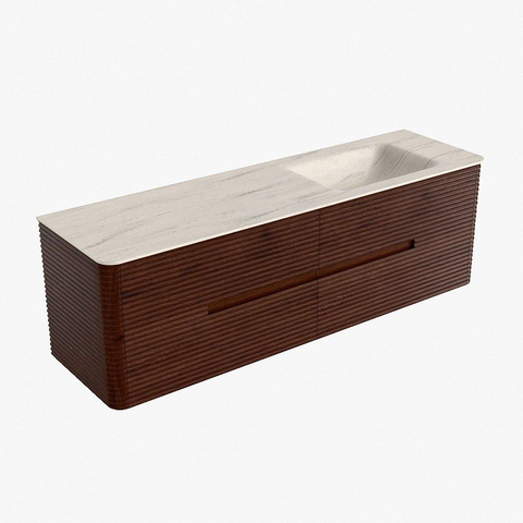 Mondiaz CIRO-DLUX Ensemble de meubles de salle de bains - 160x45x50cm - Plan-vasque Solid surface Meli - 1 vasque à droite - sans trous de robinet - 4 tiroirs - Ruby
