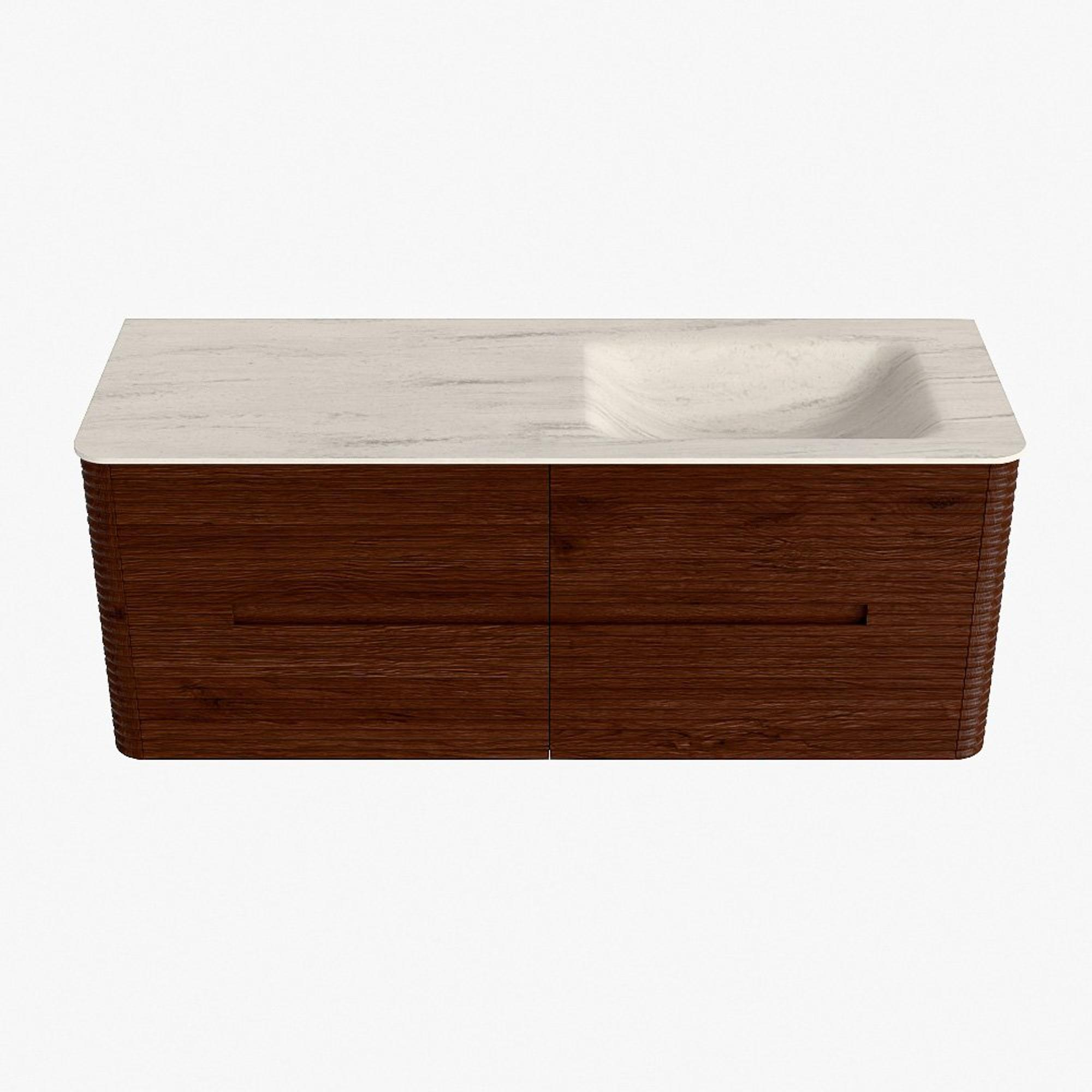 Mondiaz CIRO-DLUX Meuble de salle de bains - 130x45x50cm - Vasque en solid surface Meli - 1 vasque à droite - sans trous de robinetterie - 4 tiroirs - Ruby