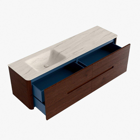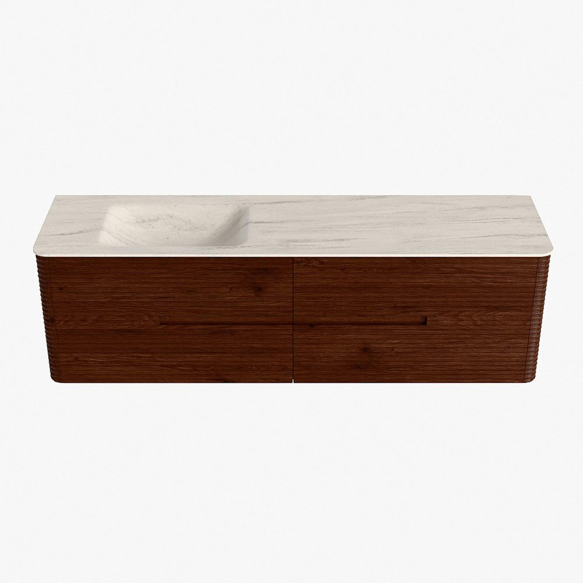 Mondiaz CIRO-DLUX Meuble de salle de bains - 170x45x50cm - Plan-vasque solid surface Meli - 1 vasque à gauche - 1 trou de robinet - 4 tiroirs - Ruby
