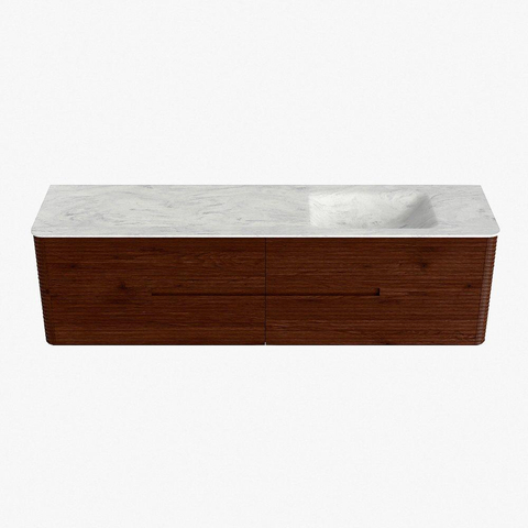 Mondiaz CIRO-DLUX Ensemble de meubles de salle de bains - 180x45x50cm - vasque en solid surface Opalo - 1 lavabo à droite - sans trous de robinet - 4 tiroirs - Ruby