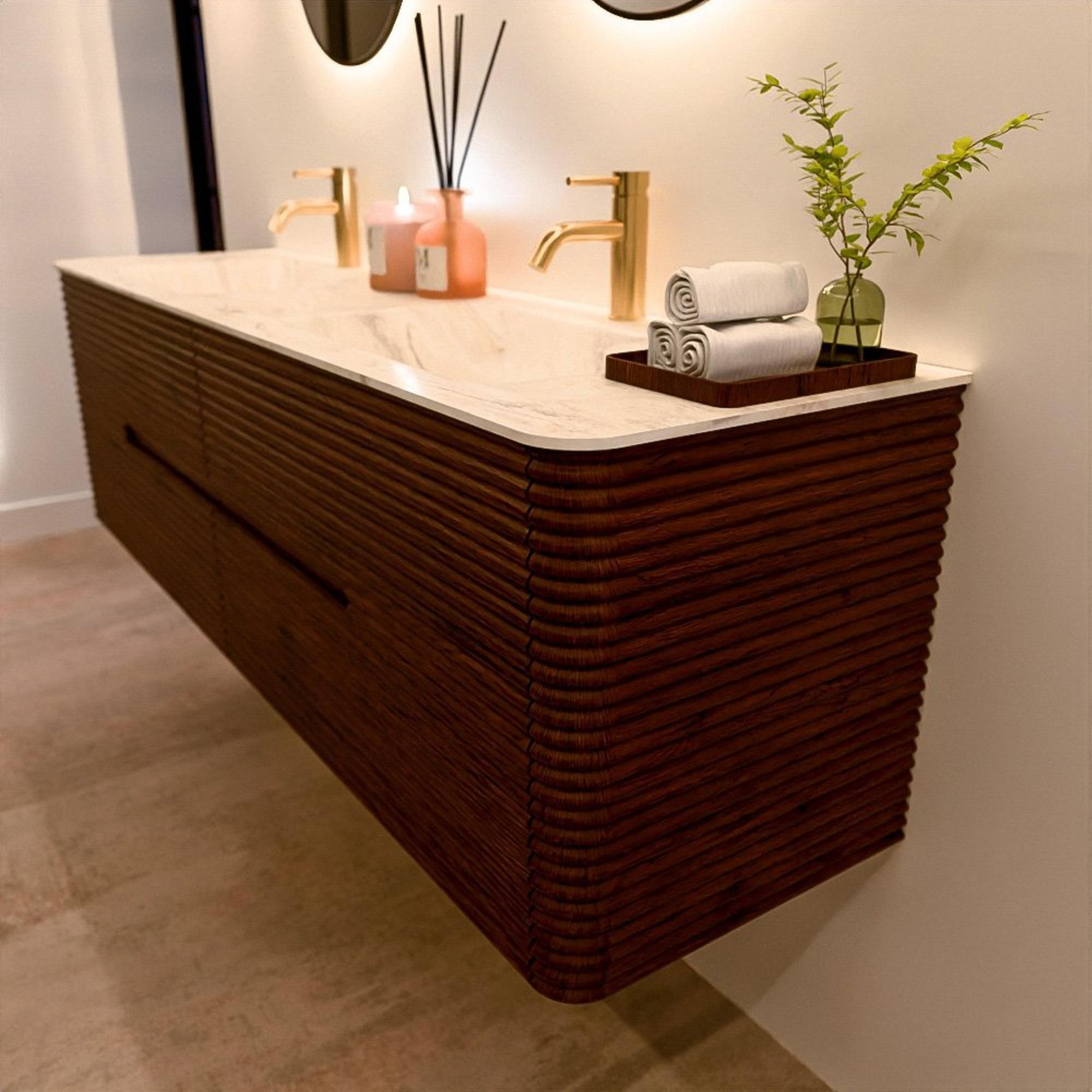 Le meuble de salle de bain CIRO-DLUX a été développé pour ceux qui choisissent un design moderne, des matériaux naturels et une fonctionnalité de haute qualité. Avec des dimensions allant de 70 cm à 190 cm, la gamme CIRO-DLUX s’intègre facilement aussi bien dans les salles de bain compactes que dans les grands espaces de design. Chaque meuble est une combinaison équilibrée d’esthétique, de savoir-faire et de qualité durable.