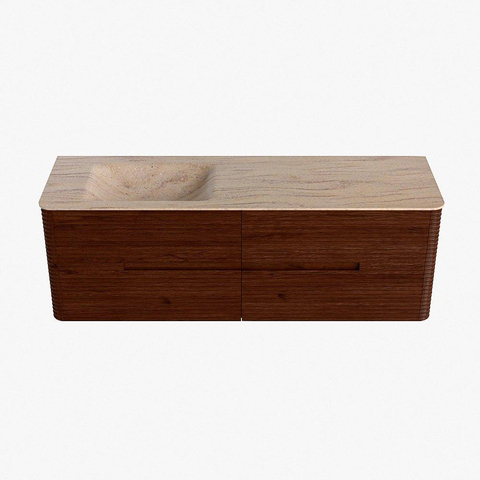 Mondiaz CIRO-DLUX Meuble de salle de bains - 150x45x50cm - Vasque Solid Surface Saba - 1 bassin à gauche - sans trous de robinet - 4 tiroirs - Ruby