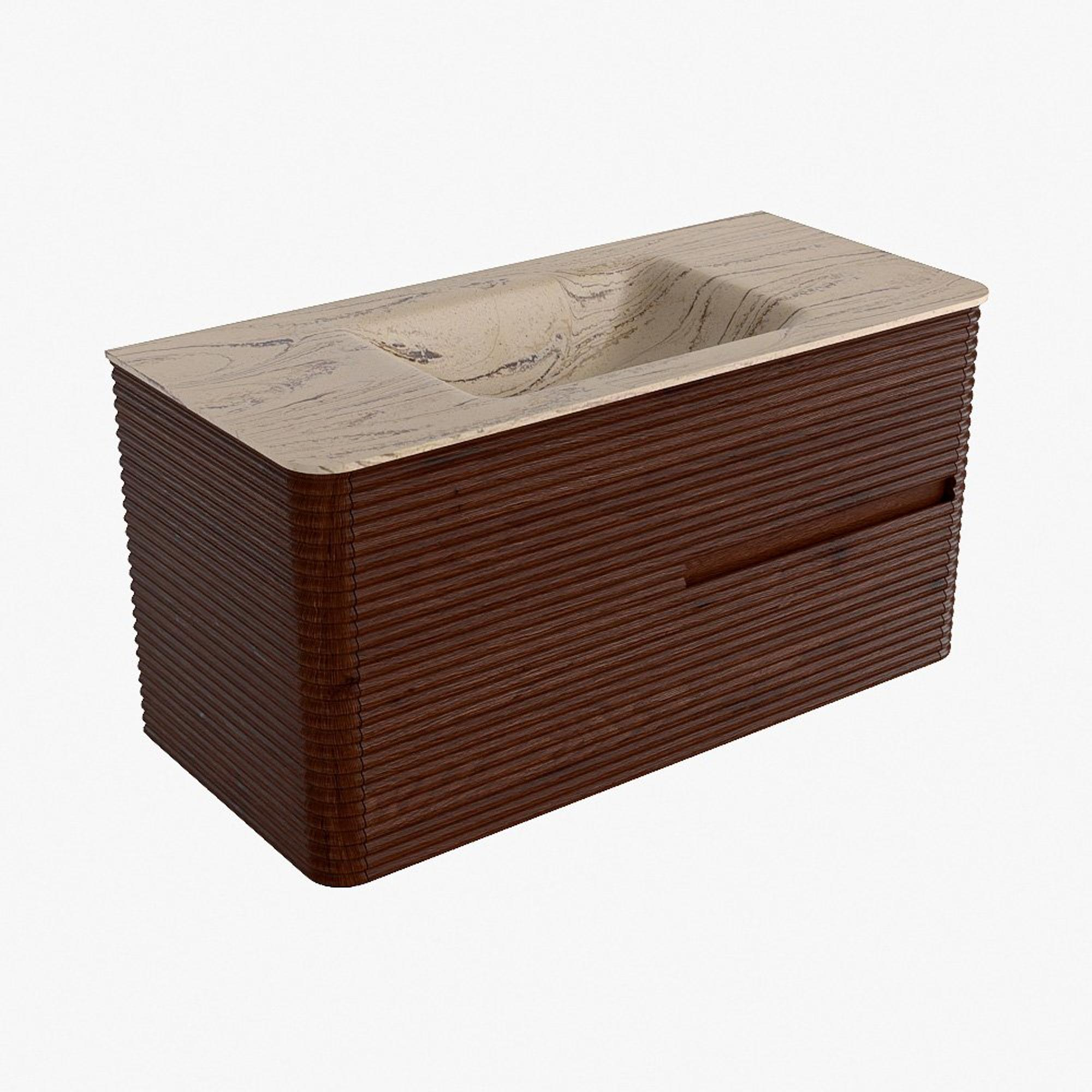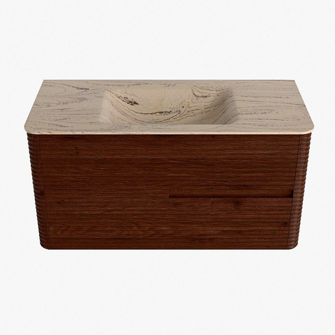 Mondiaz CIRO-DLUX Ensemble de meubles de salle de bains - 100x45x50cm - Plan-vasque Solid surface Arena - 1 vasque au milieu - sans trous de robinet - 2 tiroirs - Ruby