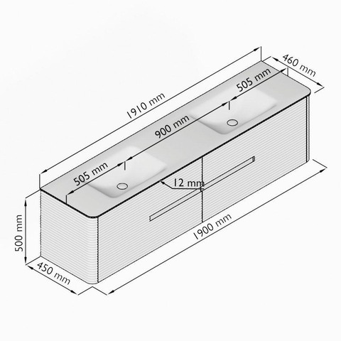 - Largeur du lavabo: 191cm