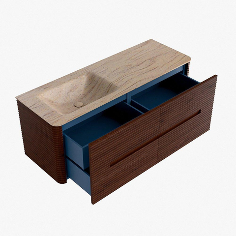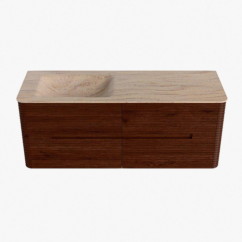 Mondiaz CIRO-DLUX Ensemble de meuble de salle de bains - 130x45x50cm - Plan vasque Solid Surface Saba - 1 bassin à gauche - 1 trou de robinet - 4 tiroirs - Ruby