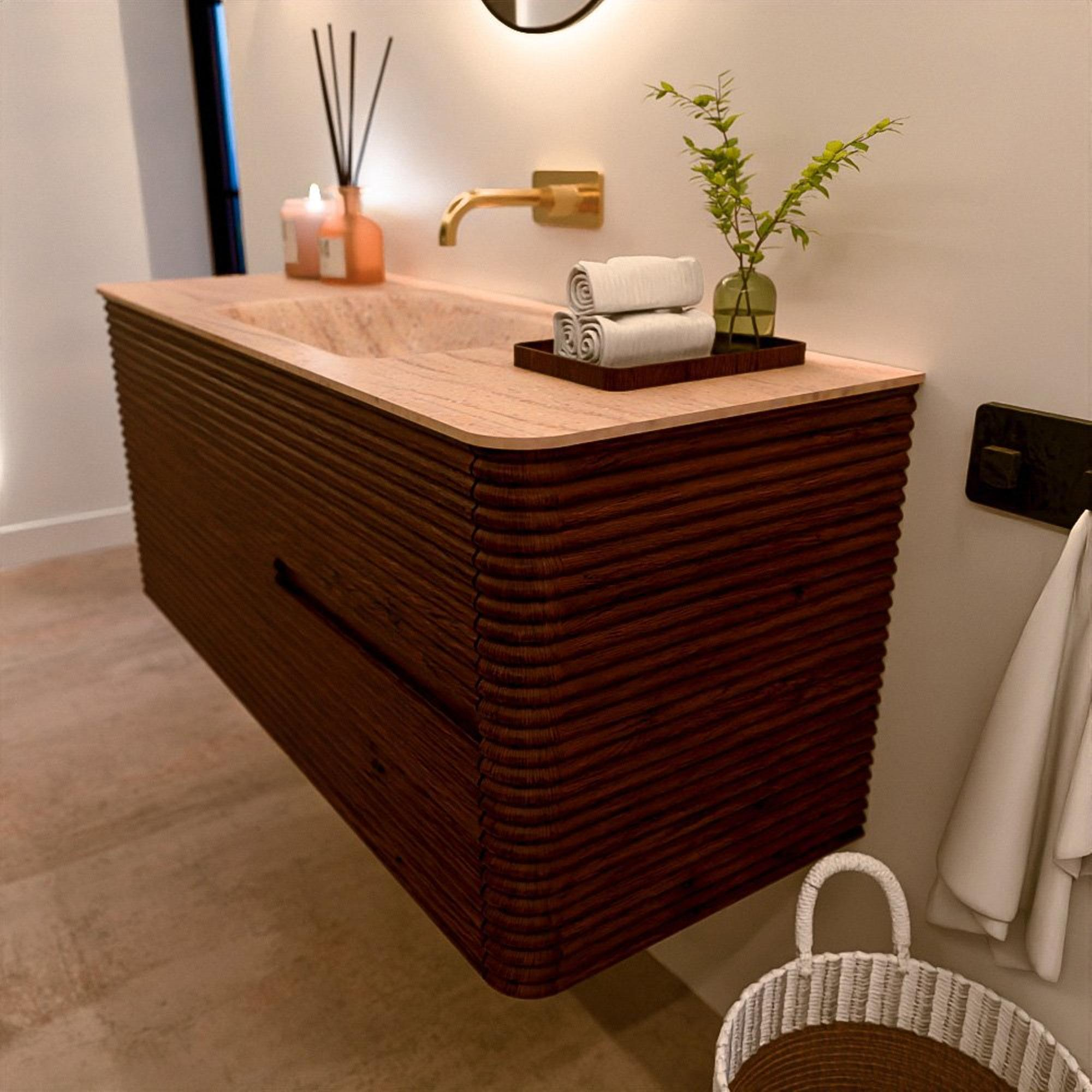 Le meuble de salle de bain CIRO-DLUX a été développé pour ceux qui choisissent un design moderne, des matériaux naturels et une fonctionnalité de haute qualité. Avec des dimensions allant de 70 cm à 190 cm, la gamme CIRO-DLUX s’intègre facilement aussi bien dans les salles de bain compactes que dans les grands espaces de design. Chaque meuble est une combinaison équilibrée d’esthétique, de savoir-faire et de qualité durable.
