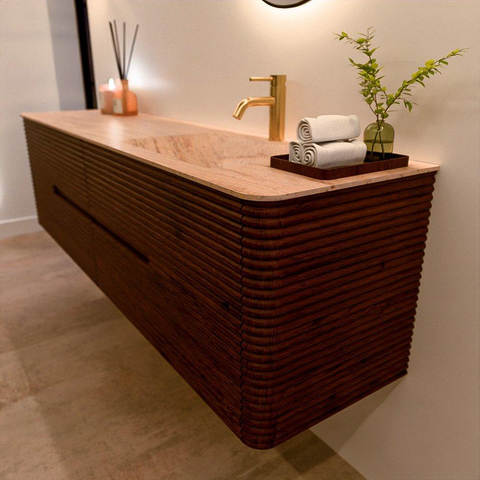 Le meuble de salle de bain CIRO-DLUX a été développé pour ceux qui choisissent un design moderne, des matériaux naturels et une fonctionnalité de haute qualité. Avec des dimensions allant de 70 cm à 190 cm, la gamme CIRO-DLUX s’intègre facilement aussi bien dans les salles de bain compactes que dans les grands espaces de design. Chaque meuble est une combinaison équilibrée d’esthétique, de savoir-faire et de qualité durable.