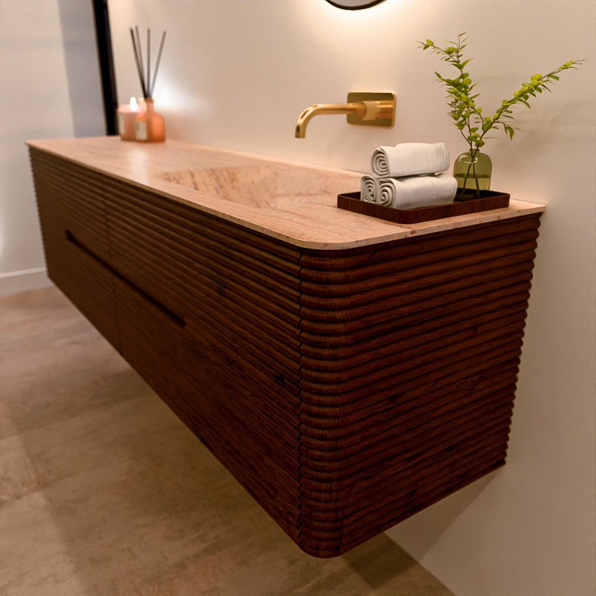 Le meuble de salle de bain CIRO-DLUX a été développé pour ceux qui choisissent un design moderne, des matériaux naturels et une fonctionnalité de haute qualité. Avec des dimensions allant de 70 cm à 190 cm, la gamme CIRO-DLUX s’intègre facilement aussi bien dans les salles de bain compactes que dans les grands espaces de design. Chaque meuble est une combinaison équilibrée d’esthétique, de savoir-faire et de qualité durable.
