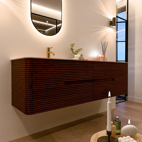 Le meuble de salle de bain CIRO-DLUX a été développé pour ceux qui choisissent un design moderne, des matériaux naturels et une fonctionnalité de haute qualité. Avec des dimensions allant de 70 cm à 190 cm, la gamme CIRO-DLUX s’intègre facilement aussi bien dans les salles de bain compactes que dans les grands espaces de design. Chaque meuble est une combinaison équilibrée d’esthétique, de savoir-faire et de qualité durable.