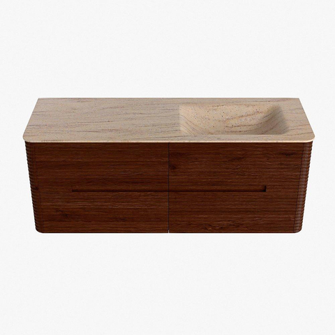 Mondiaz CIRO-DLUX Ensemble de meubles de salle de bains - 130x45x50cm - Vasque solid surface Saba - 1 lavabo à droite - 1 trou de robinet - 4 tiroirs - Ruby