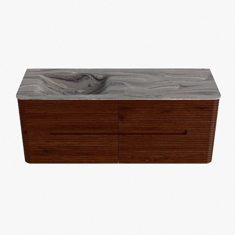 Mondiaz CIRO-DLUX Ensemble de meuble de salle de bains - 130x45x50cm - Vasque en solid surface Sombra - 1 lavabo à gauche - 1 trou de robinet - 4 tiroirs - Ruby