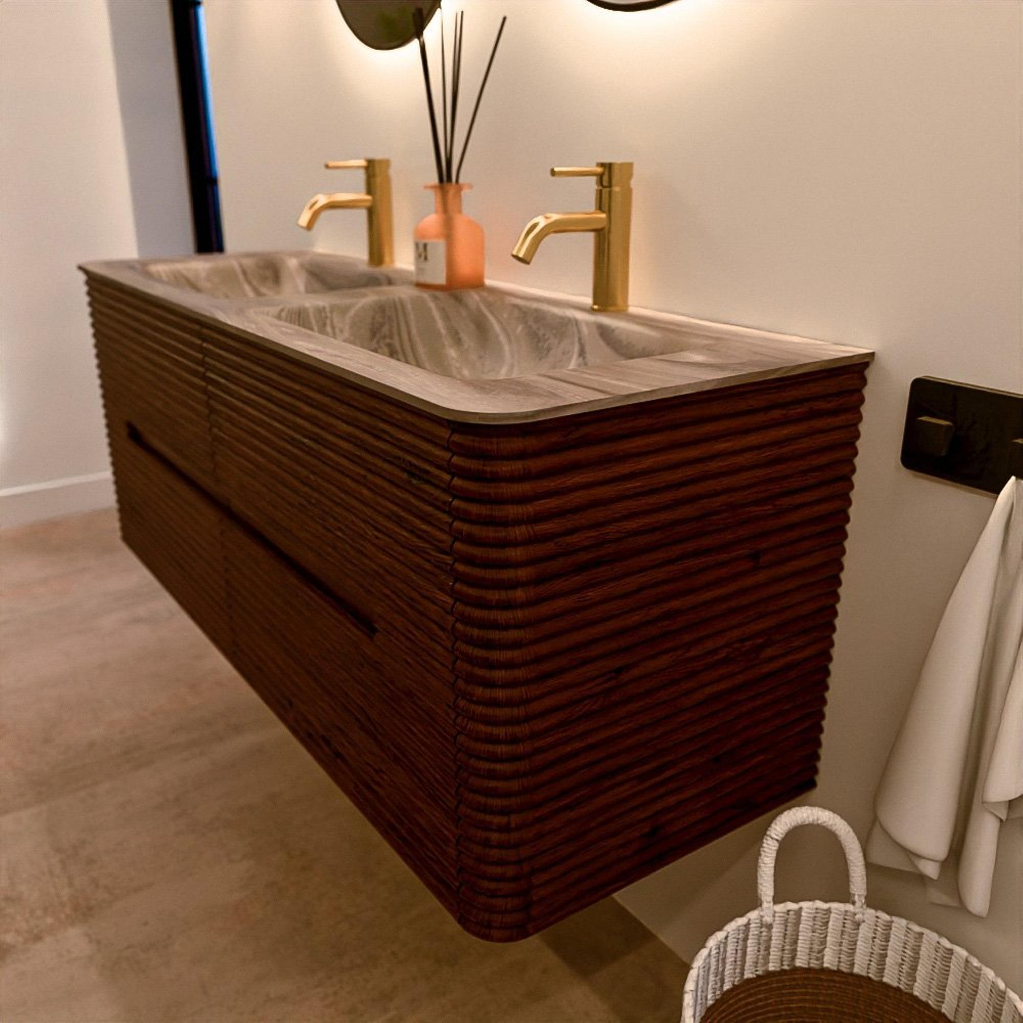 Le meuble de salle de bain CIRO-DLUX a été développé pour ceux qui choisissent un design moderne, des matériaux naturels et une fonctionnalité de haute qualité. Avec des dimensions allant de 70 cm à 190 cm, la gamme CIRO-DLUX s’intègre facilement aussi bien dans les salles de bain compactes que dans les grands espaces de design. Chaque meuble est une combinaison équilibrée d’esthétique, de savoir-faire et de qualité durable.