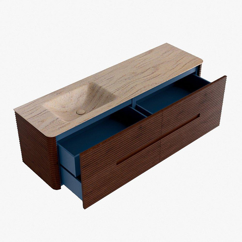 Mondiaz CIRO-DLUX Meuble de salle de bains - 160x45x50cm - Plan vasque Solid surface Saba - 1 vasque à gauche - sans trous de robinetterie - 4 tiroirs - Ruby