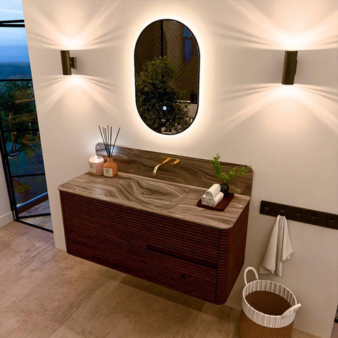 Mondiaz CIRO-DLUX Meuble de salle de bains - 120x45x50cm - Plan vasque solid surface Sombra - 1 lavabo au milieu - sans trous de robinet - 2 tiroirs - Ruby