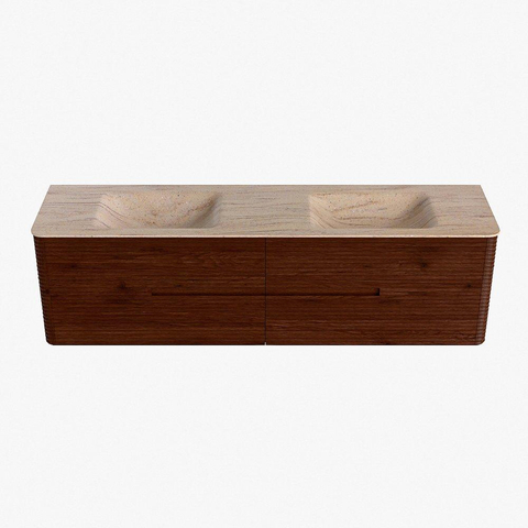 Mondiaz CIRO-DLUX Meuble de salle de bains - 180x45x50cm - Plan-vasque solid surface Saba - 2 bacs Double - sans trous de robinetterie - 4 tiroirs - Ruby