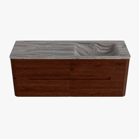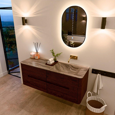 Mondiaz CIRO-DLUX Meuble de salle de bains - 130x45x50cm - plan vasque solid surface Sombra - 1 vasque à droite - sans trous de robinetterie - 4 tiroirs - Ruby