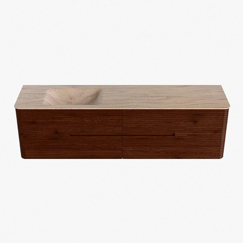 Mondiaz CIRO-DLUX Ensemble de meubles de salle de bains - 180x45x50cm - Plan vasque Solid surface Saba - 1 vasque à gauche - sans trous de robinet - 4 tiroirs - Ruby