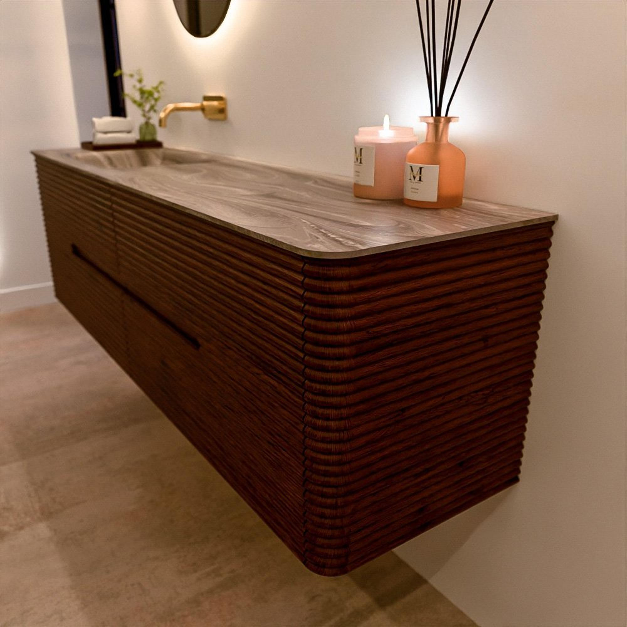 Le meuble de salle de bain CIRO-DLUX a été développé pour ceux qui choisissent un design moderne, des matériaux naturels et une fonctionnalité de haute qualité. Avec des dimensions allant de 70 cm à 190 cm, la gamme CIRO-DLUX s’intègre facilement aussi bien dans les salles de bain compactes que dans les grands espaces de design. Chaque meuble est une combinaison équilibrée d’esthétique, de savoir-faire et de qualité durable.