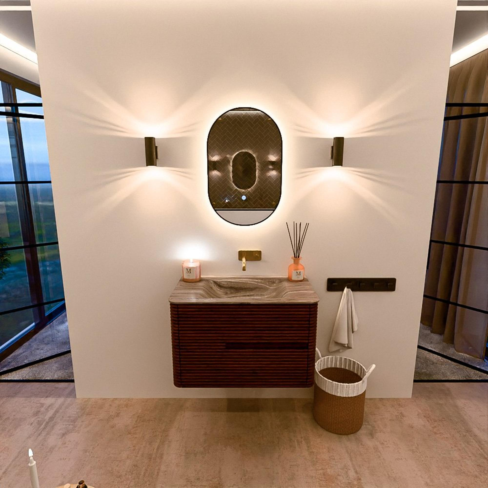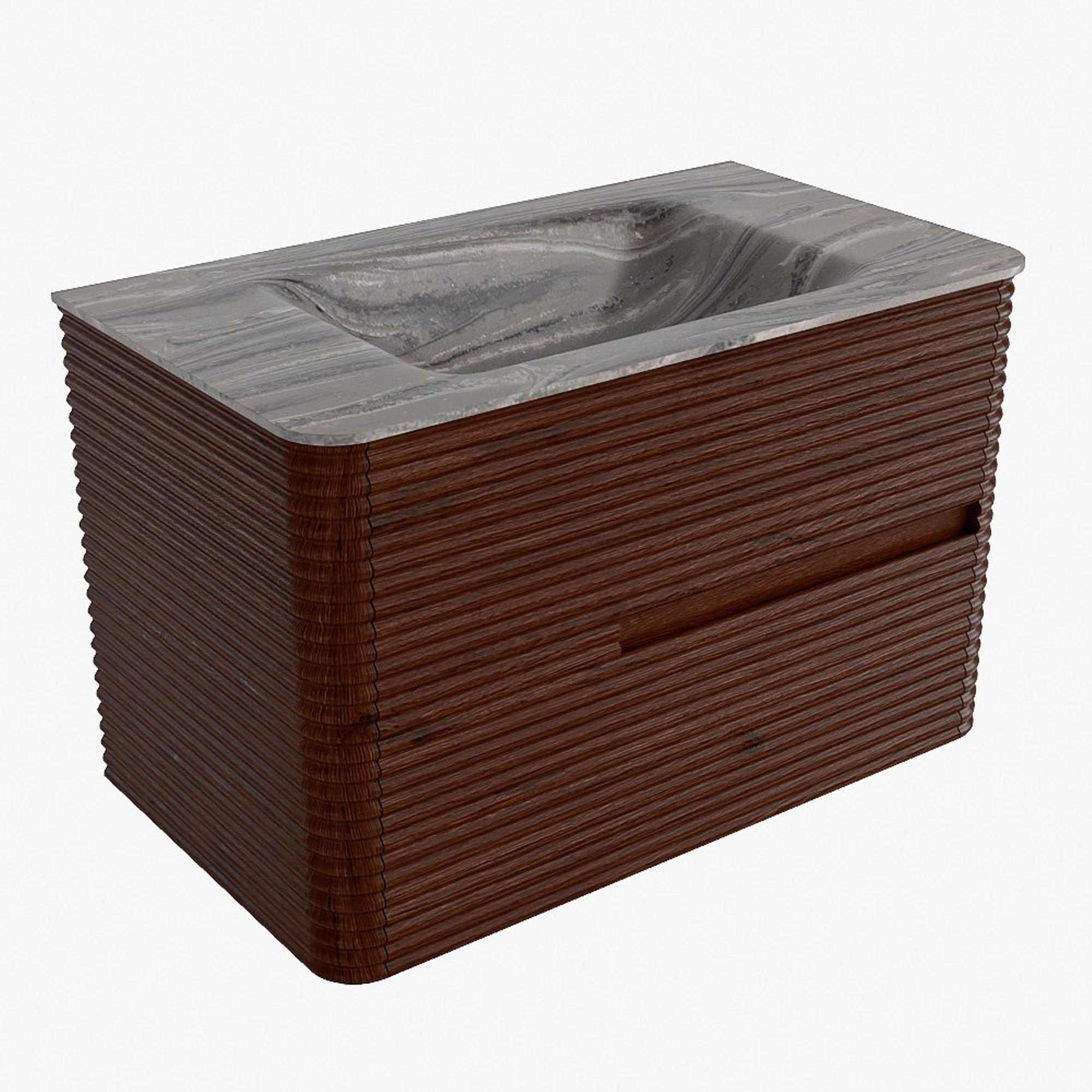 Mondiaz CIRO-DLUX Ensemble de meubles de salle de bains - 80x45x50cm - lavabo en solid surface Sombra - 1 vasque au milieu - sans trous de robinetterie - 2 tiroirs - Ruby
