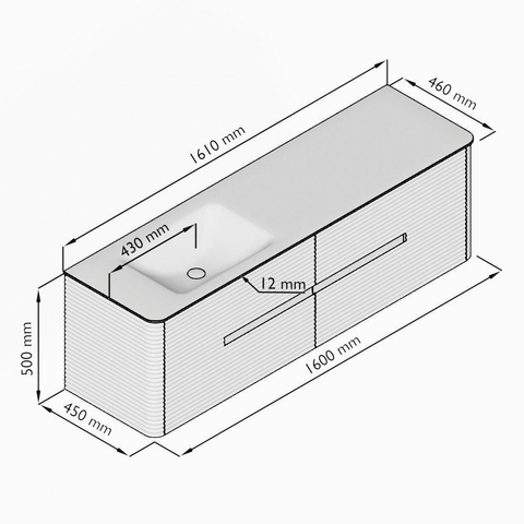 - Largeur du lavabo: 161cm